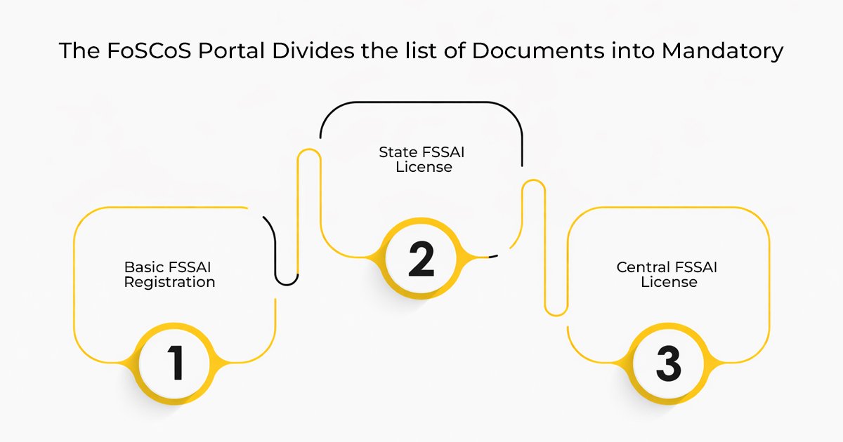 FSSAI License documents required based on the registration type