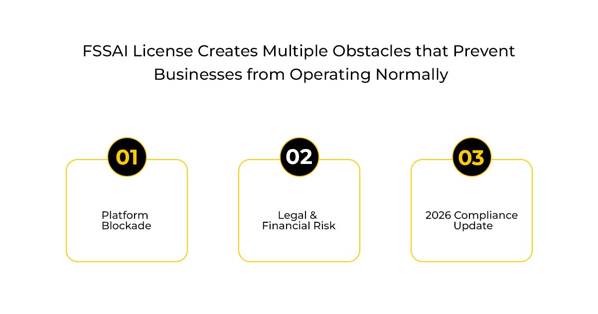 The absence of an FSSAI license creates multiple obstacles that prevent businesses from operating normally.