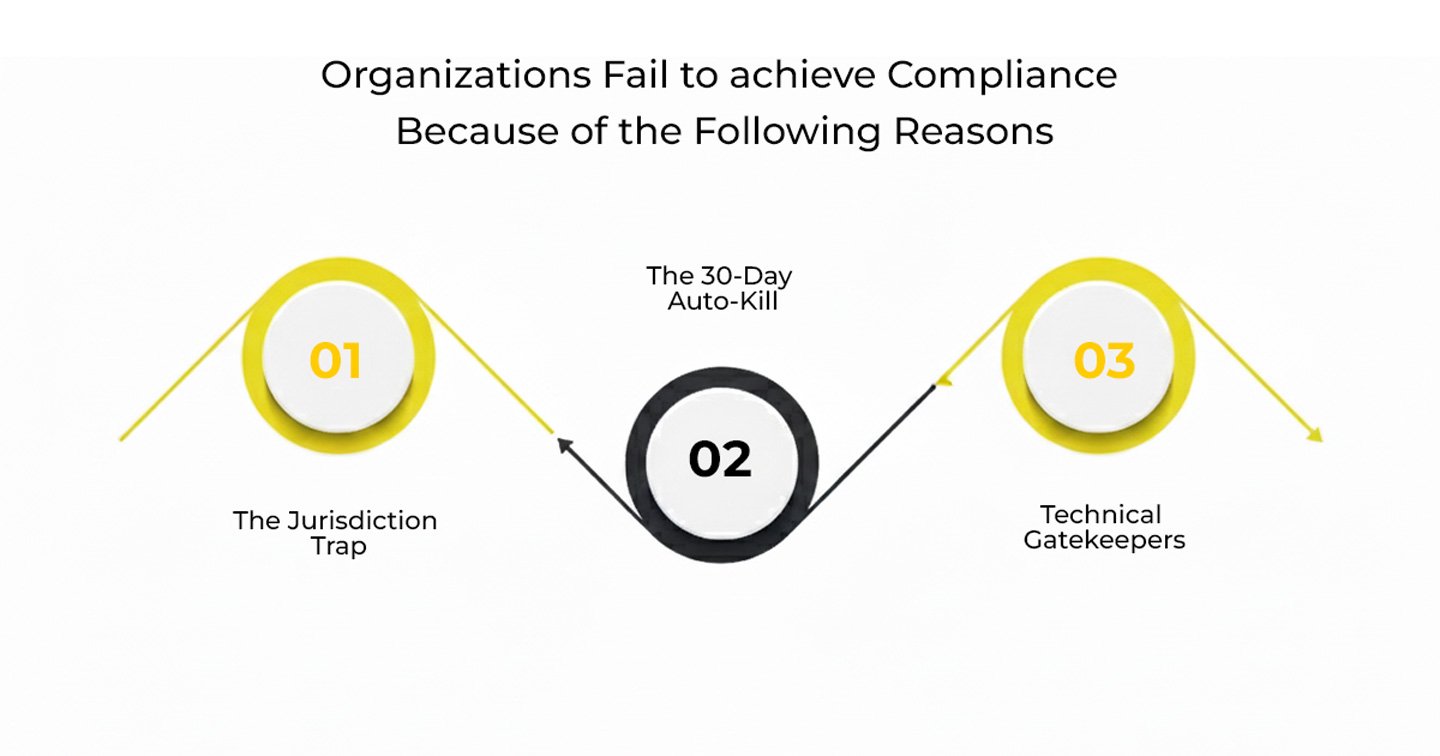 Organizations fail to achieve compliance because of the following reasons:
