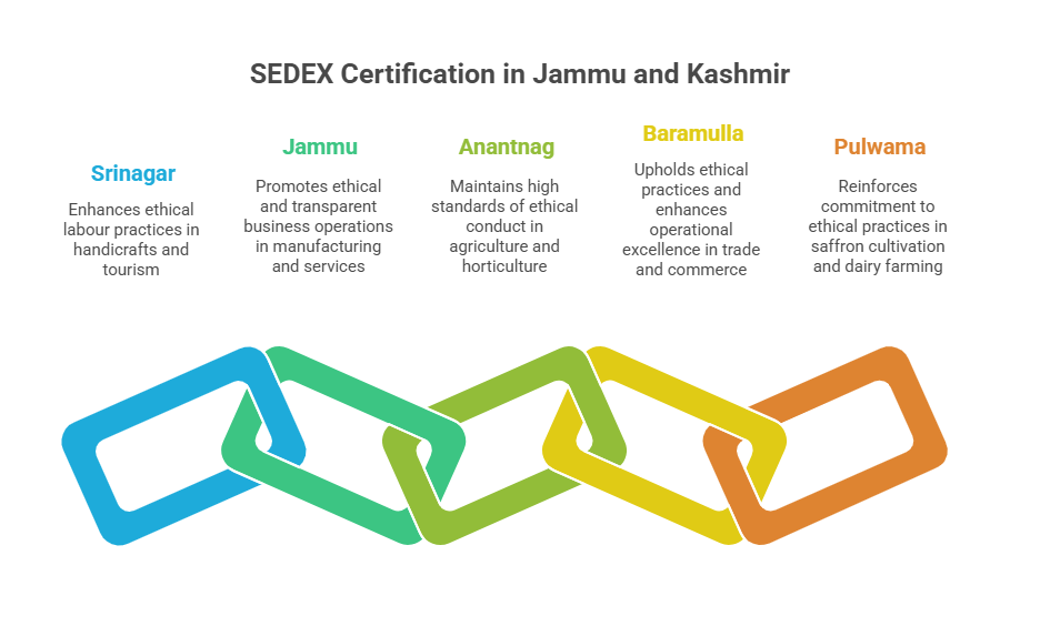 Jammu: Known for its diverse industrial base, Jammu benefits from SEDEX certification to promote ethical and transparent business operations, supporting its manufacturing and service sectors.